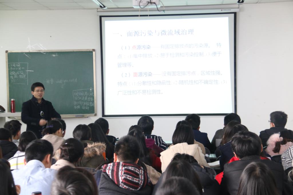 张远彬研究员以《农业面源污染及其控制对策》为题,从面源污染与小(微)流域治理、农村生活污水及其处理措施、变“废”为宝——生态循环农业三个方面做了讲解,他用举例与图片展示的方式强调了当代乡村环境污染状况的严重性,并介绍了处理环境污染的先进现代方法与成功示例,对合理利用自然与生态循环农业进行了重点介绍,通过实例与专业技能分析,指出农村生活污水无(微)动力处理技术、生态循环农业、混农林业等是治理农业面源污染的低成本、高效率、可持续的有效手段。讲座结束后,张远彬耐心解答了在座同学提出的疑问,还与我校15vip太阳集团官网专业教师探讨了关于农村水体污染、土壤污染等一系列环境问题治理手段,与学院进一步商讨了合作事宜。