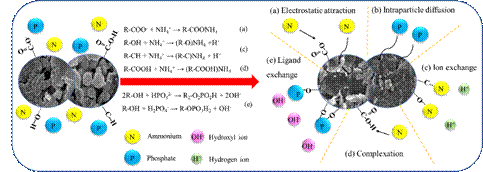 中药渣去除氨氮和磷酸盐的机理示意图