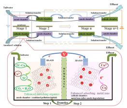 双室电催化体系去除TC-Cu2+示意图 双室电催化耦合技术去除TC-Cr(VI)示意图