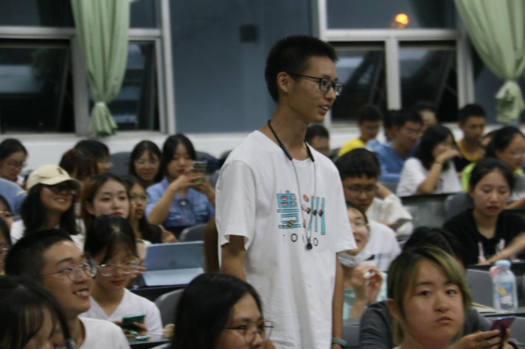 比赛结束后,观众提问环节随之到来,各位21级新生踊跃提问,与台上八位辩手展开一场唇枪舌战,真正参与到本次表演赛之中,体验到辩论的魅力。