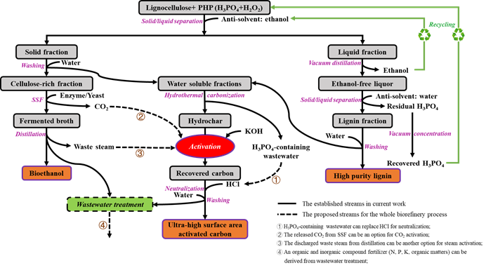 基于PHP预处理技术的生物乙醇、木质素以及超高表面积活性炭多联产生物精炼平台
