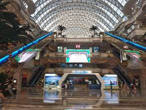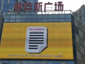 在奥克斯广场(左)、富森美家居(右)播放污染源普查视频截图